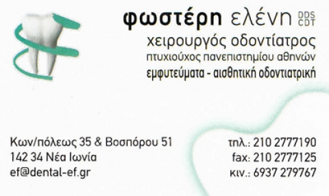 Εμφυτεύματα, αισθητική οδοντιατρική, περιοδοντολογία, laser, dental scan.Δέχεται 09:00-17:00 Δευτ. - Τετ., 12:00-21:00 Τρ. - Πεμ. με ραντεβού.