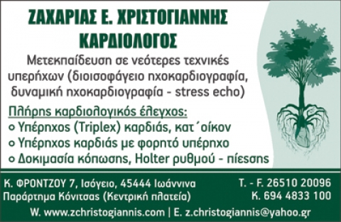 Ειδικός ΚαρδιολόγοςΜετεκπαίδευση σε Νεότερες Τεχνικές Υπερήχων(Ηχοκαρδιογραφία - Δυναμική Ηχοκαρδιογραφία -Stress Echo)Δύναται Υπέρηχος στο σπίτι με φορητό Υπέρηχο