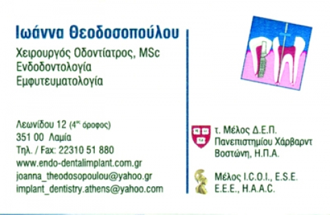 Ενδοδοντολόγος, Εμφυτευματολόγος, Dr Dental SurgeonMSc Implantologist, EndodontistΕθνικού Καποδιστριακού Πανεπιστημίου Αθηνών και Harvard University, Boston, U.S.A.